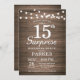 Rustic Surprise 15th Birthday Invitation with String Lights Wood Background. 13th 15th 16th 18th 21st 30th 40th 50th 60th 70th 80th 90th 100th, Any age. For further customisation, please click the "Customise it" button and use our design tool to modify this template.