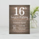 Rustic Surprise 16th Birthday Invitation. Rustic Wood Background. Vintage Retro Birthday. Kids Birthday. Boy or Girl Bday Invite. 13th 15th 16th 18th 20th 21st 30th 40th 50th 60th 70th 80th 90th 100th, Any age. For further customisation, please click the "Customise it" button and use our design tool to modify this template.
