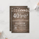 Rustic Surprise 40th Birthday Invitation Wood Background with String Lights. 13th 15th 16th 18th 20th 21st 30th 40th 50th 60th 70th 80th 90th 100th, Any age. Adult Birthday. Woman or Man Male Birthday Party. For further customisation, please click the "Customise it" button and use our design tool to modify this template.