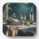 Rustic Table With Wine In A Forest Paper Plate