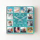 Showcase your cherished family memories with this rustic teal barn wood photo collage wall clock. This personalised clock features a weathered wood grain design and space for 12 of your favourite photos. Add your family name and established year for a unique and sentimental touch. Perfect for a farmhouse kitchen, living room, or bedroom, this clock is a beautiful way to display your photos and keep time.