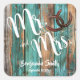 Rustic Teal Barn Wood Horseshoe Wedding Square Sticker