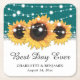 Rustic Teal Burlap Lace Sunflower Wedding Square Paper Coaster
