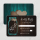 Rustic Teal Country Wood Heart Mason Jar Wedding RSVP Card