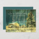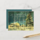 rustic teal evergreen snowy forest winter wedding announcement postcard