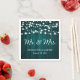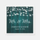 These wedding paper napkins featuring barn wood and string lights are ideal for a teal rustic wedding party. Easily personalise with your wedding details.