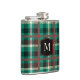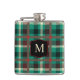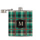 Rustic Teal Plaid Pattern with Monogram Hip Flask