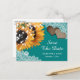 Custom teal wedding save the date postcard perfect for your rustic teal wedding party inspired by sunflower flowers.