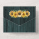 Invite guests to your upcoming wedding with a Rustic Teal Sunflower All in One Wedding Invite. Invite design features a rustic wooden background with an elegant bouquet of sunflowers. Personalize with the groom and bride's names along with the wedding date and location. Additional wedding stationery available with this design as well.
