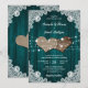 Rustic Teal Wood Burlap Lace Wedding Invitation