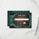 Personalised rustic wood and mason jar teal wedding RSVP cards featuring a mason jar against a rustic wood background. Easily personalise online. Matching items available to complement these romantic rustic teal wedding RSVP cards.