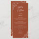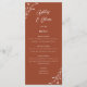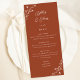 This lovely wedding reception menu card features a lovely terracotta background with hand-drawn wildflowers and elegant typography in white. Together these elements create an rustic yet elegant wedding menu that would be perfect for a romantic wedding any time of the year. This design coordinates with our Rustic Wildflowers wedding suite.