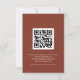 Rustic Terracotta Fall Florals QR Code Wedding. Beautiful autumnal florals decrate the top and RSVP is in an elegant set script on a background of white. The rest of the text you can easily personalise. You can give your guests the alternative to reply online by adding your QR code to your reply page of your wedding website on the back by replacing the QR code on the sample. You can create QR codes for free online. Simply search “QR code creator” and lots of options come up to create for free.