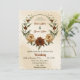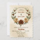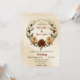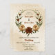 Unique wedding invitation featuring romantic rustic terracotta flowers and green leaves.
