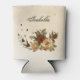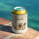 Unique can cooler featuring romantic rustic terracotta flowers and green leaves.
