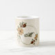 Unique coffee mug featuring romantic rustic terracotta flowers and green leaves.