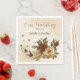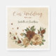 Unique wedding paper napkin featuring romantic rustic terracotta flowers and green leaves.