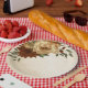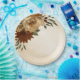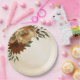 Unique wedding paper plate featuring romantic rustic terracotta flowers and green leaves.