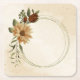 Unique wedding paper coaster featuring romantic rustic terracotta flowers and green leaves.