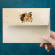 Unique wedding envelope featuring romantic rustic terracotta flowers and green leaves.