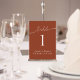 Rustic Terracotta Script Wedding Table Number sign to create a fun modern table setting for a classic wedding. Personalise it on the front and back.