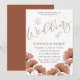 This elegant wedding invitation features flowing modern script typography paired with warm terracotta botanical artwork for a stylish, contemporary look. The sweeping “The Wedding Of” calligraphy creates a bold focal point, while soft speckled detailing and delicate fan-shaped florals add texture and depth. Perfect for autumn weddings, boho celebrations, and modern romantic themes, this invitation blends earthy tones with refined elegance for a truly memorable first impression.