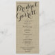 Changeable Text design and faux burlap printed rack card wedding programs with brown text or change colour of text as preferred.