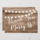 Thank you wedding officiant card featuring a rustic wood background, string lights, and a personalised template.