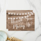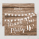 Thank you wedding officiant card featuring a rustic wood background, string lights, and a personalised template.