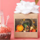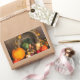 Stickers with a photograph of a thanksgiving harvest, set on a rustic wooden table. Pumpkin, potatoes, squash etc... make up this bountiful collection of food. Colourful autumn leaves surround the cornucopia basket.