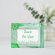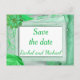 Inspired by the countryside this rustic theme green save the date is a great postcard to mail to your wedding guests. Featuring a rustic green display of beauty complete with green floral designs, an image of a wooden photo frame introduces the bride and groom. Above the bride and groom's name is "Save the Date" written in green cursive style. The back has a green background with more wedding details displayed. Purchase yours today!