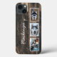 Rustic Three Photo Wood Collage Name iPhone 13 Case - This unique iPhone case features three of your favourite photos on a barn wood background and is personalised with your name. If you prefer your name in another font, you can easily change it in the design tool.