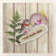 A rustic design with a wood background, torn paper, a bird on a branch, a sea shell, and a fern leaf collage. It's oil painted. You can personalize it with your own name. Just click personalize. Delete " your name here." And type in your name. If you wish to change the size of the fonts, color, or font type, click edit design. You will see all the options on the right side of the page. In this area, you can double-click the text image in order to change the text here as well. Then just click done.