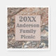 Add a personal touch to your next family reunion. These rustic paper napkins feature a beautiful photo of black and brown tree bark. This tree trunk displayed deep grooves and diagonal lines creating a rustic pattern. A centre square in shades of brown support the year and "Anderson Family Picnic" which can easily be personalised.