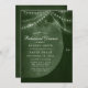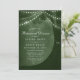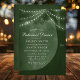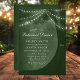 Invite your loved ones to your rehearsal dinner with this charming invitation. Featuring a rustic tree silhouette adorned with twinkling string lights against a vibrant green backdrop, this invitation sets the tone for a warm and intimate gathering. Perfect for an outdoor or evening rehearsal, this design will surely delight your guests.
