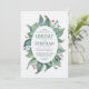 Watercolor leaves laurel and pink flower buds rustic wedding invitations for garden wedding, rustic woodland wedding or for wedding reception under the trees.