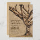 Rustic country wedding invitations featuring a romantic outdoor country woodland setting with an oak tree as the centre piece, drapped in twinkling string lights. A charming carved love heart with your initials, a faded overlay of kraft paper with a subtle hint of the distant woodland and warm wedding wording.