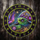 Enhance your fishing or hunting lodge with this rustic-meets-fantasy artwork. A turtle with a brilliantly designed shell in purples and greens pairs beautifully with a glowing butterfly in purple and gold. Golden floral accents and a cosmic starry sky complete the scene.