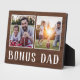 Charming wood sign for Father's Day, birthdays, or new stepdads features two photos side by side on a rustic background with "Bonus Dad" beneath.