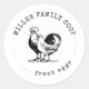 Upgrade your homestead or family farm with this beautiful vintage egg carton sticker with a rustic script and chicken and rooster illustration. Customise with your own family name and be sure to check out our store for more items from this collection and choose between different colours that suit your needs.