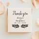 Rustic typography custom wedding favour thank you stamp. Create your own rustic thank you stamp with the plant leaves. The design has a Thank you text in trendy typography, bride and groom names and wedding date. Personalise the stamp with your data.