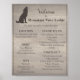 Designed for cabins, vacation rentals, and cozy mountain homes, this Mountain Lodge guest information poster blends rustic warmth with clean, functional design. Featuring a neutral wood-inspired background and minimalist wildlife silhouette, it provides essential details at a glance—house rules, Wi-Fi information, check-out instructions, host contact details, and property location—while complementing a calm, elevated lodge aesthetic.