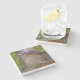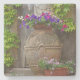 THIS LIMESTONE COASTER FEATURES A RUSTIC VASE WITH PINK, PURPLE AND WHITE PETUNIAS IN FRONT OF AN OLD WOODEN DOOR WITH CLIMBING GREEN VINE. GREAT FOR HOUSEWARMING , HOSTESS OR WEDDING GIFTS.