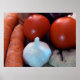Fresh ripe vegetables of carrots, tomatoes, garlic and ginger. Ready to be chopped and cooked into a delicious meal. Nice and tasty for every one to eat and enjoy.
