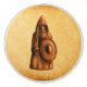A rustic, digital "wood carving of a viking warrior with shield, sword and helmet. A rustic, digital "wood carving of a viking warrior with shield, sword and helmet, superimposed on an old paper or parchment background image.