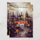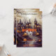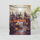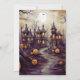 A highlight of the scene is the abundance of jack-o' lanterns scattered throughout the village, each one glowing with spooky grins. Their carved faces light up the scene with classic Halloween cheer, perfectly complementing the vintage vibe of the invitation. The design combines nostalgic elements with modern charm, making it a perfect choice for a Halloween celebration that embraces both the old and the new.