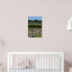 The scenic Rustic Vineyard Grape Fields Poster Print features a scenic landscape photograph of large fields of grapes growing in the hills and wine country of Napa Valley, California with a rustic weathered wooden fence in the foreground on a blue sky summer day.