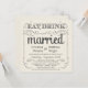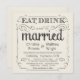 Eat, Drink, and be Married -- Vintage style rustic country wedding invitations -- Swirly, curly scrolls and old-fashion typography on antique ivory cream white parchment background. Add your names and wedding info in this easy to use template. Elegant but fun and whimsical, chalkboard style script calligraphy can be modified for your formal or semi-formal retro wedding theme. Casual modern style is perfect for trendy contemporary weddings with a fun touch of sophisticated charm for the traditional bride and groom. Please contact us for help with customisation if you need additional room for your wedding details. Other sizes and chalkboard styles available along with coordinating styles for engagement party and couples shower. NOTE: This product design is set-up for square cards only -- requires extra postage.