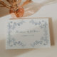 Elegant rustic floral line art wedding guest book with a dusty blue coloured vintage botanical frame design.