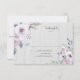 Rustic florals in muted tones of violet, lavender, and purple with white floral accents and lush matching greenery over a whitewashed wooden background RSVP. Matching wedding invitation available.